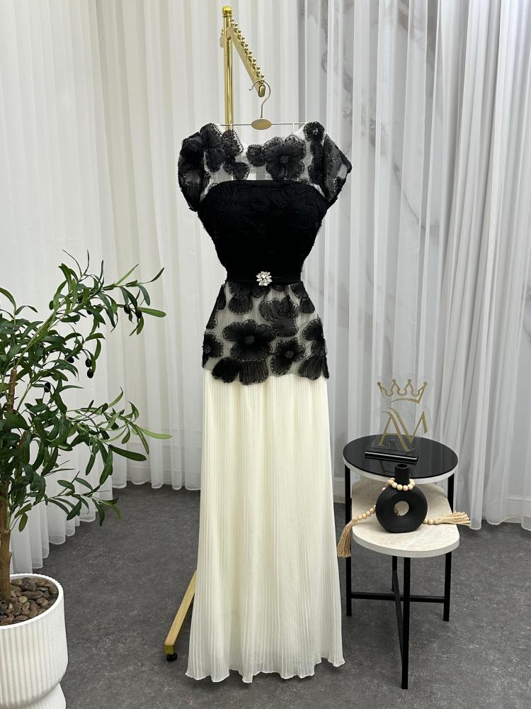 يتميز هذا الفستان بتصميمه الفريد الذي يجمع بين رقة قماش الجورجيت البليسيه وتفاصيل الورود المطرزة الفنية. يتوفر بثلاثة ألوان جذابة: الأسود الكلاسيكي، الأزرق السماوي الهادئ، والوردي الناعم، ليخلق لكِ إطلالة مبهرة تجذب الأنظار وتترك انطباعًا يدوم طويلًا.