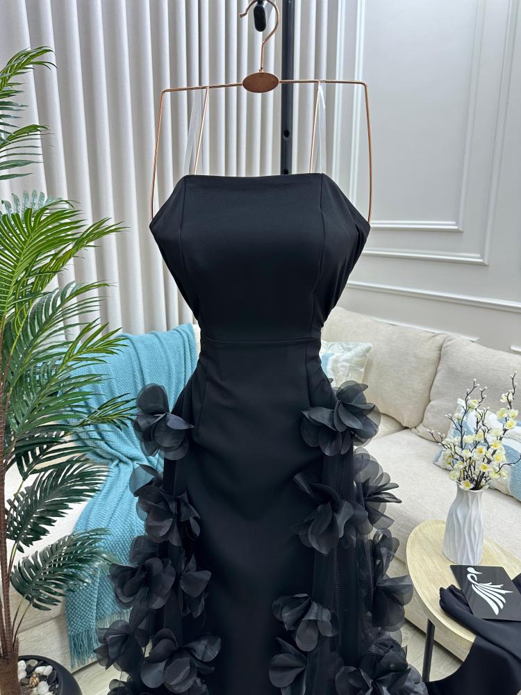 فستان سهرة ورد أنيق | بتصميم باربي وتل وورود قص ليزر | جنة الأزياء