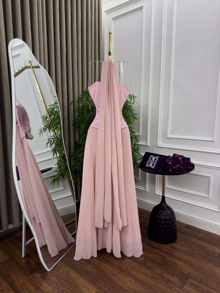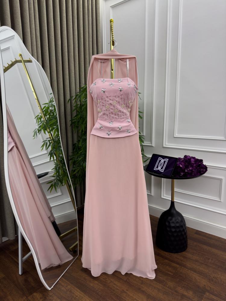 فستان سهرة باربي | فخم بتطريز يدوي وخامة شيفون | جنة الأزياء